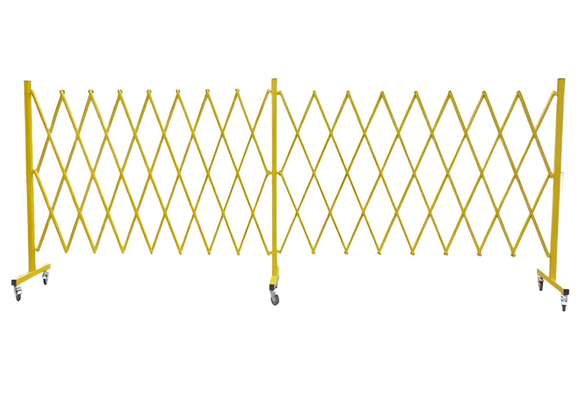 Estructura metálica resistente, acabado pulvirrevestido amarillo, seis ruedas giratorias de 5’’, dos asas en los extremos para facilitar la movilidad, incluye cadenas de seguridad que fijan la puerta a la pared o a los racks.